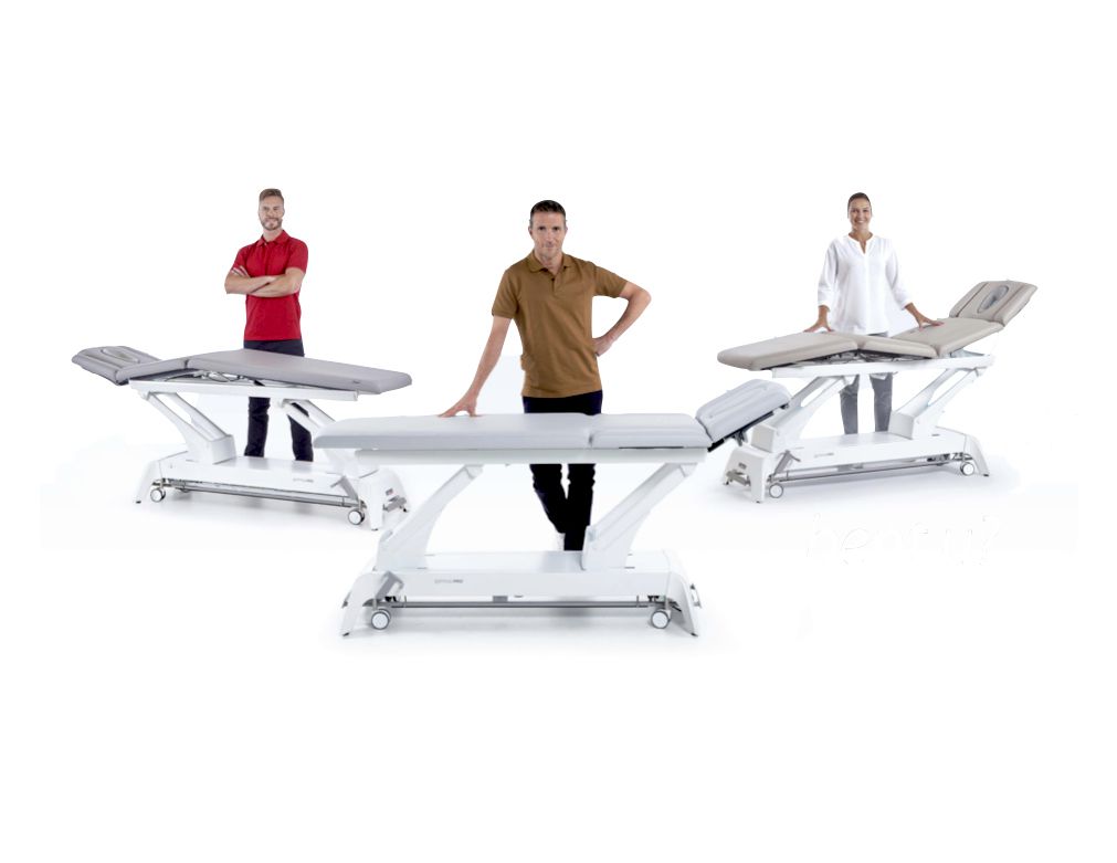 La Série T de la Gymna PRO est une table de massage en trois parties pour des traitements en position assise et allongée, combinée avec le réglage cyphose pour les mobilisations du dos. Au choix avec réglages manuels ou électriques.