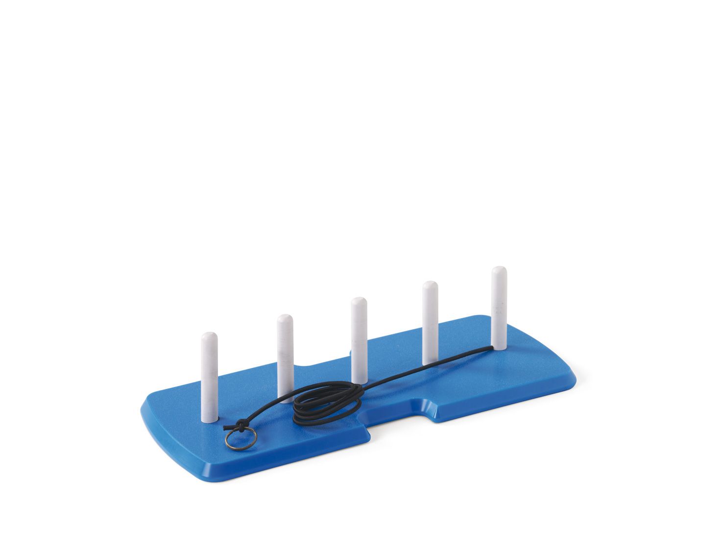 Cette aide est conçue pour permettre aux patients de s'exercer en utilisant des tâches de slalom entre les chevilles, suivant une séquence déterminée par le thérapeute à chaque fois.  Précision et coordination des mouvements sont nécessaires pour maintenir le cordon élastique tendu et le guider pendant l'exercice.