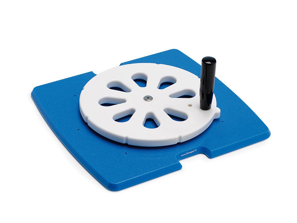 Le patient peut s'entraîner à effectuer un demi-cercle ou un cercle complet.  La poignée peut être tourné et facilite la préhension par le dessus ou par le côté.  Cette aide peut être placée sur différentes surfaces et à une distance différente, même sur les genoux d'un patient assis, pour aider à déplacer la main et le poignet, ainsi que le coude et l'épaule.