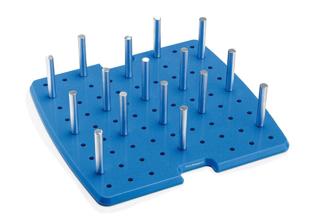 Chevilles d'aluminium pour grande planche, incluant 16 chevilles qui peuvent être insérés librement dans les 75 trous aménagés dans la base.