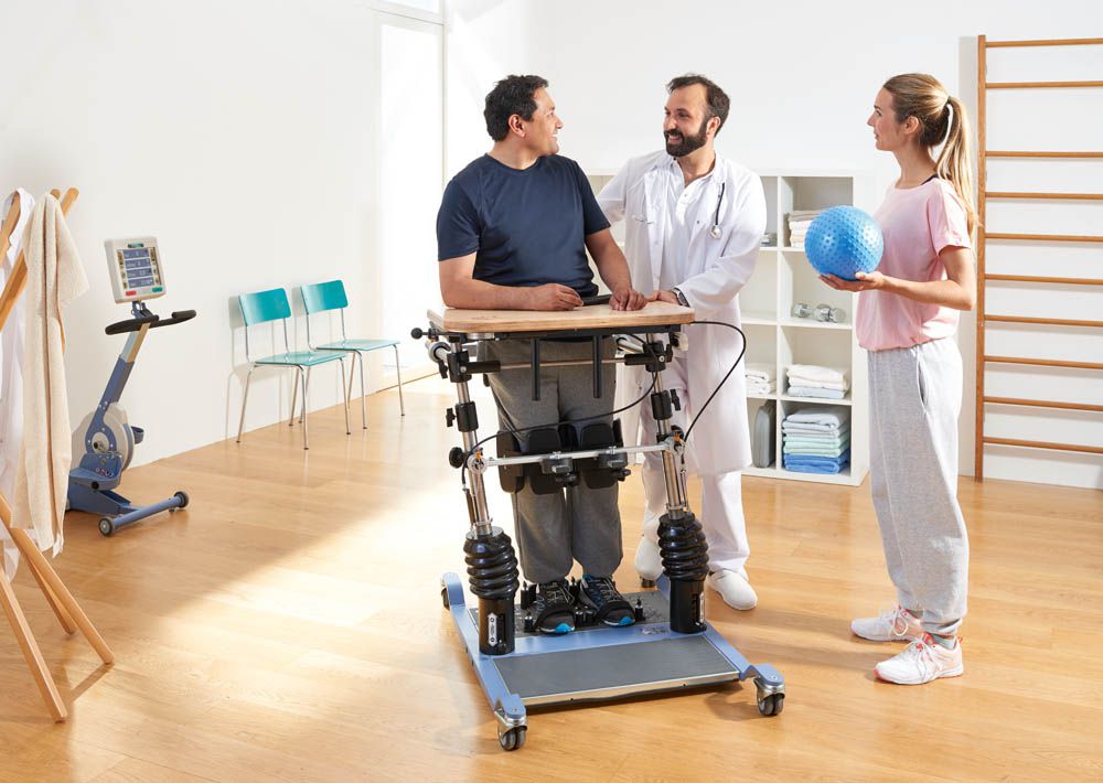 L'appareil d'exercice debout et équilibrant convient aux patients présentant un risque de chute ainsi qu'aux utilisateurs de fauteuils roulants et aux patients en état végétatif.