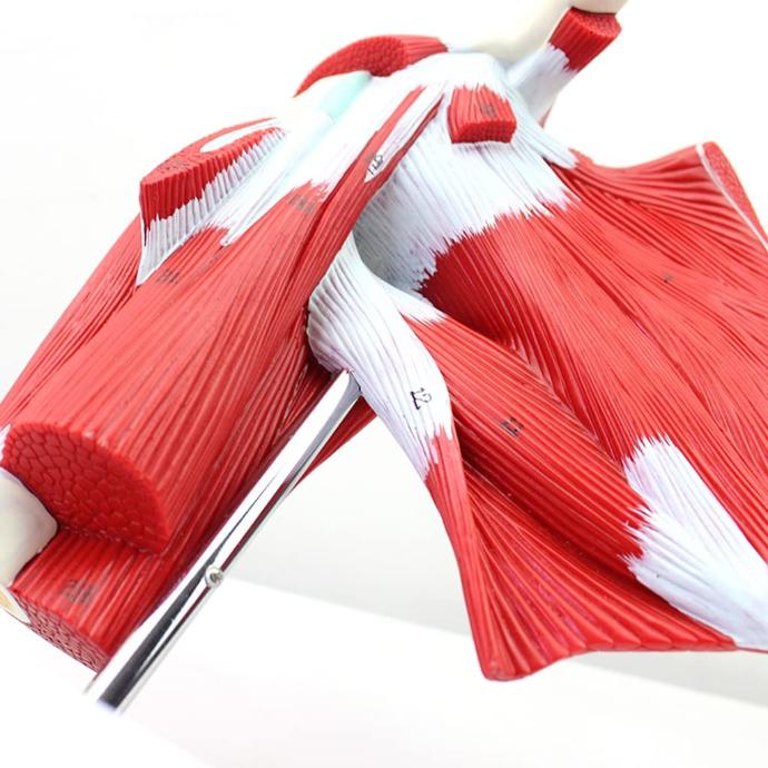 Conçu à l'échelle 1:1, ce modèle reproduit fidèlement la texture et l'orientation des muscles, révélant en détail la morphologie des muscles superficiels et profonds, des tendons et des os des omoplates.