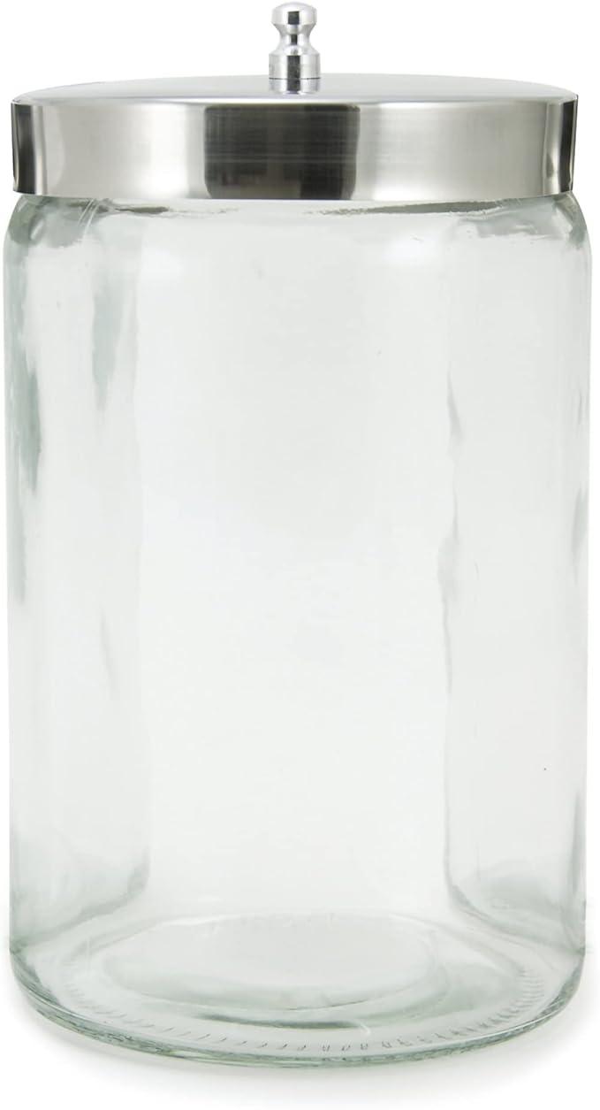 Bocal en verre avec couvercle en acier inoxydable - 11 cm (4.5") de diamètre, 17.7 cm (7") de hauteur.