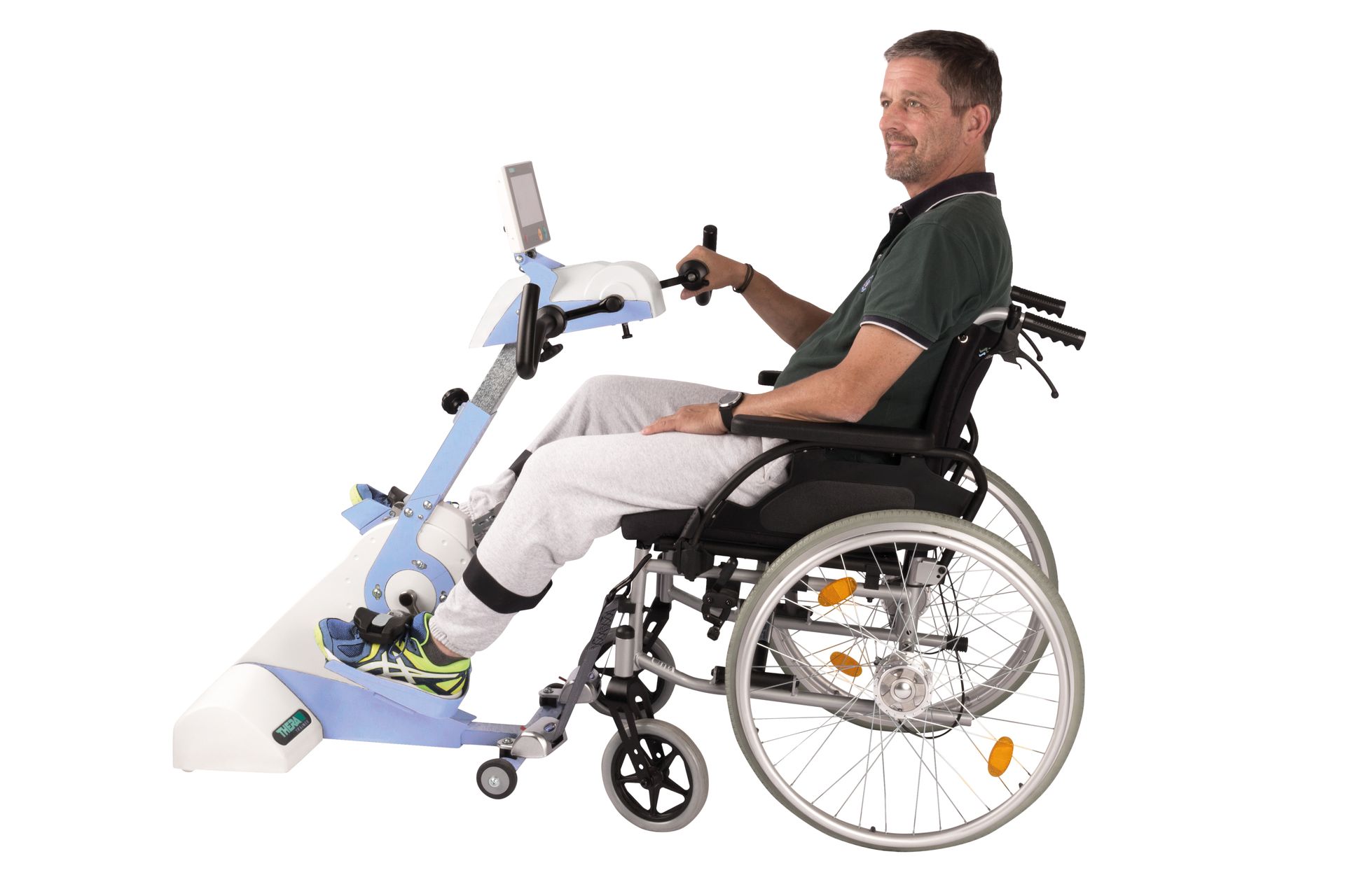 Vélo thérapeutique motorisé conçu pour les mouvements circulaires passifs, assistés ou actifs des membres inférieurs et supérieurs, y compris l'affichage de la symétrie. Comprenant :