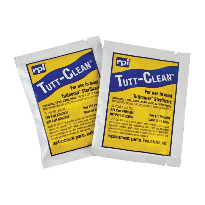 Conçu spécifiquement pour les stérilisateurs à vapeur, le nettoyant pour autoclave Tutt-Clean nettoie et détartre efficacement le réservoir, la chambre et la tubulure en quelques minutes. Dix (10) sachets par boîte.