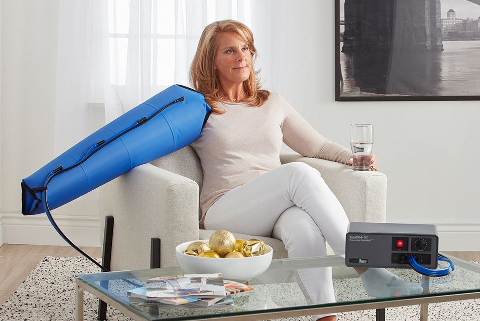 Appareil de compression Circulator à 4 ou 8 chambres de compressions. Gère la douleur, réduit l'enflure, favorise la cicatrisation des plaies et prévient l'infection. Améliore le flux lymphatique et vasculaire.